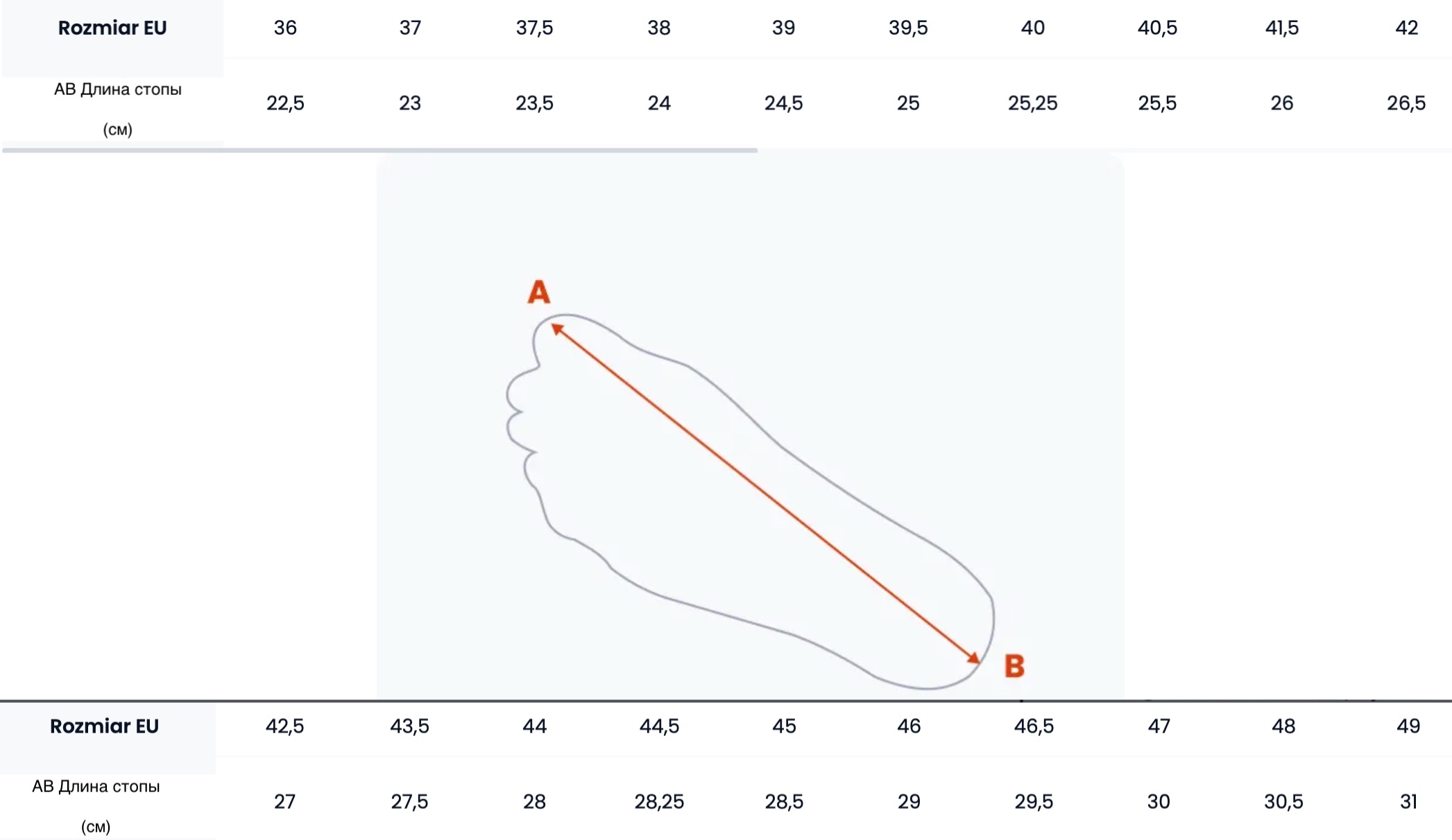Таблица размеров