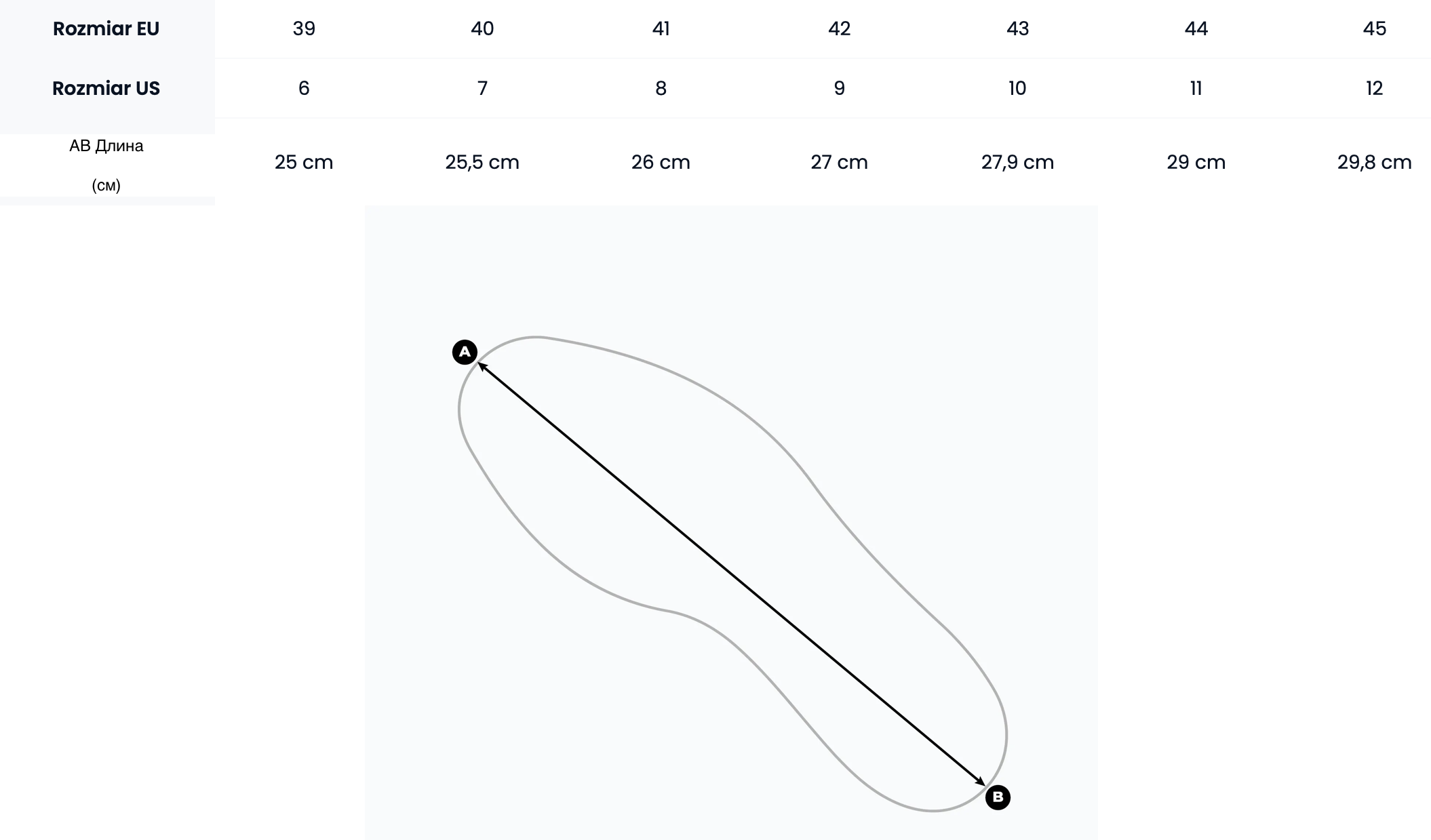 Таблица размеров