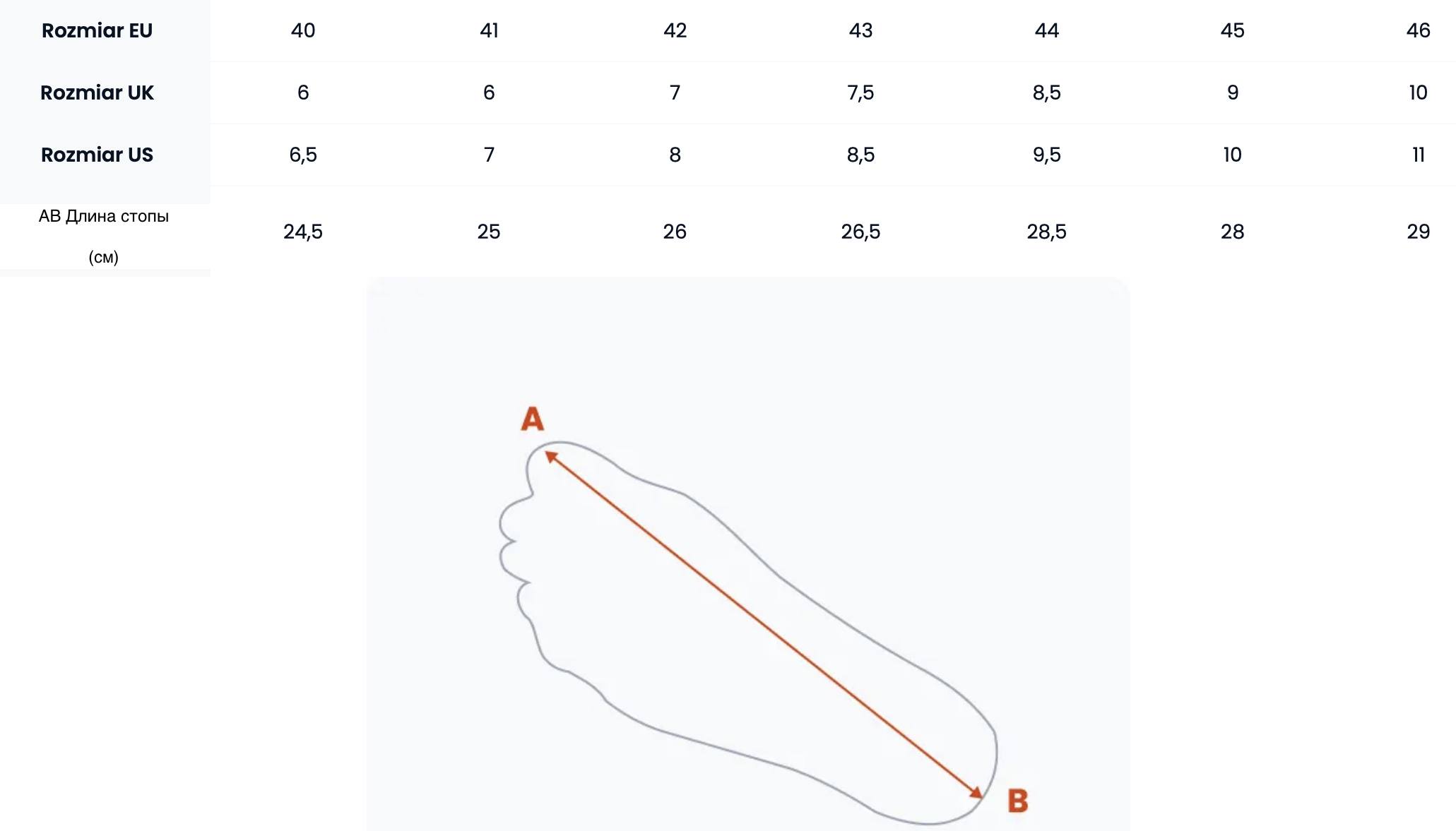 Таблица размеров