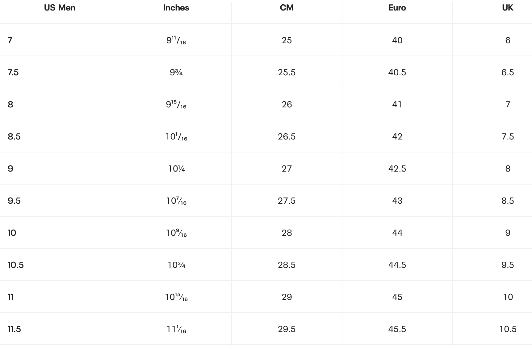 Таблица размеров