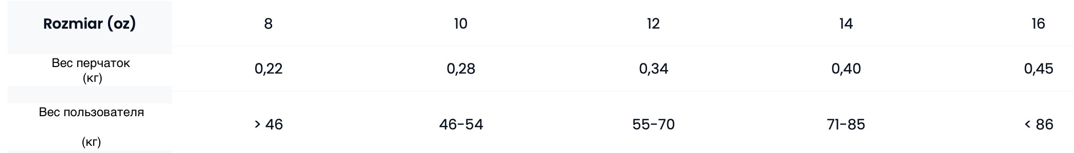 Таблица размеров