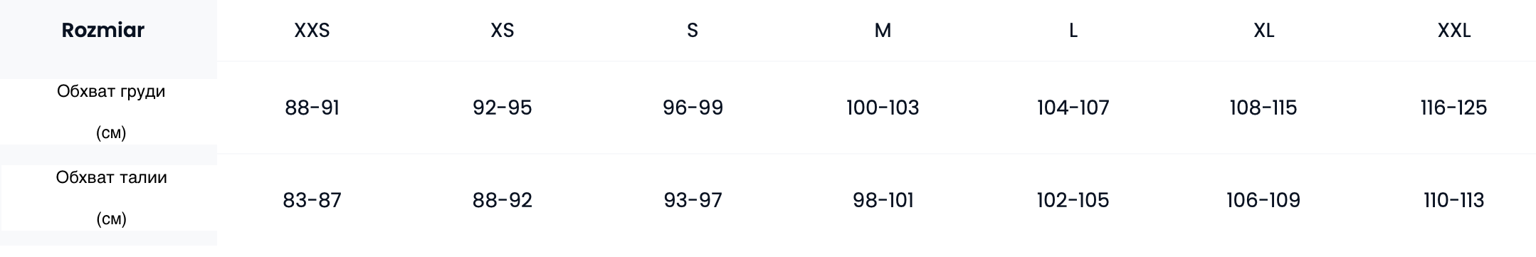 Таблица размеров