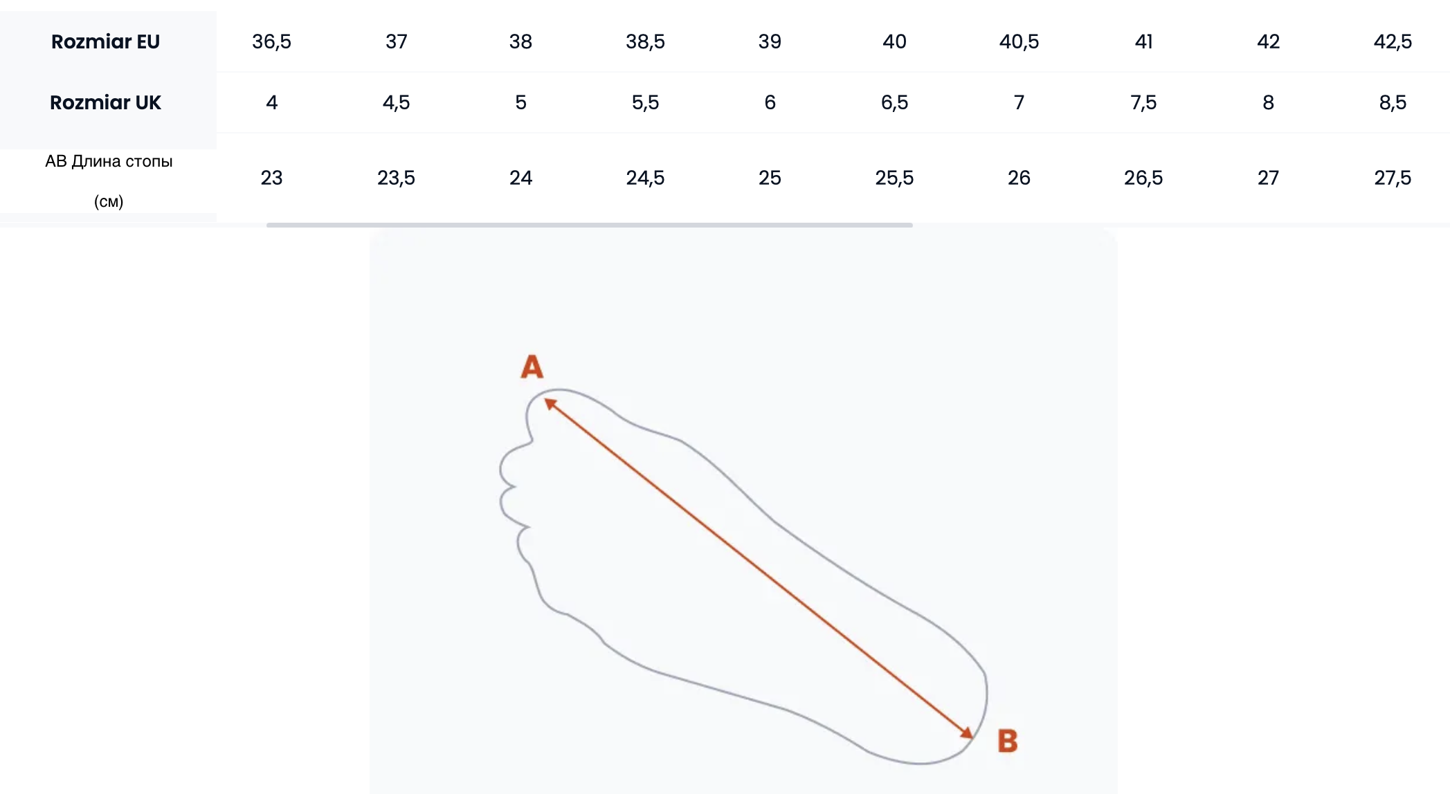 Таблица размеров