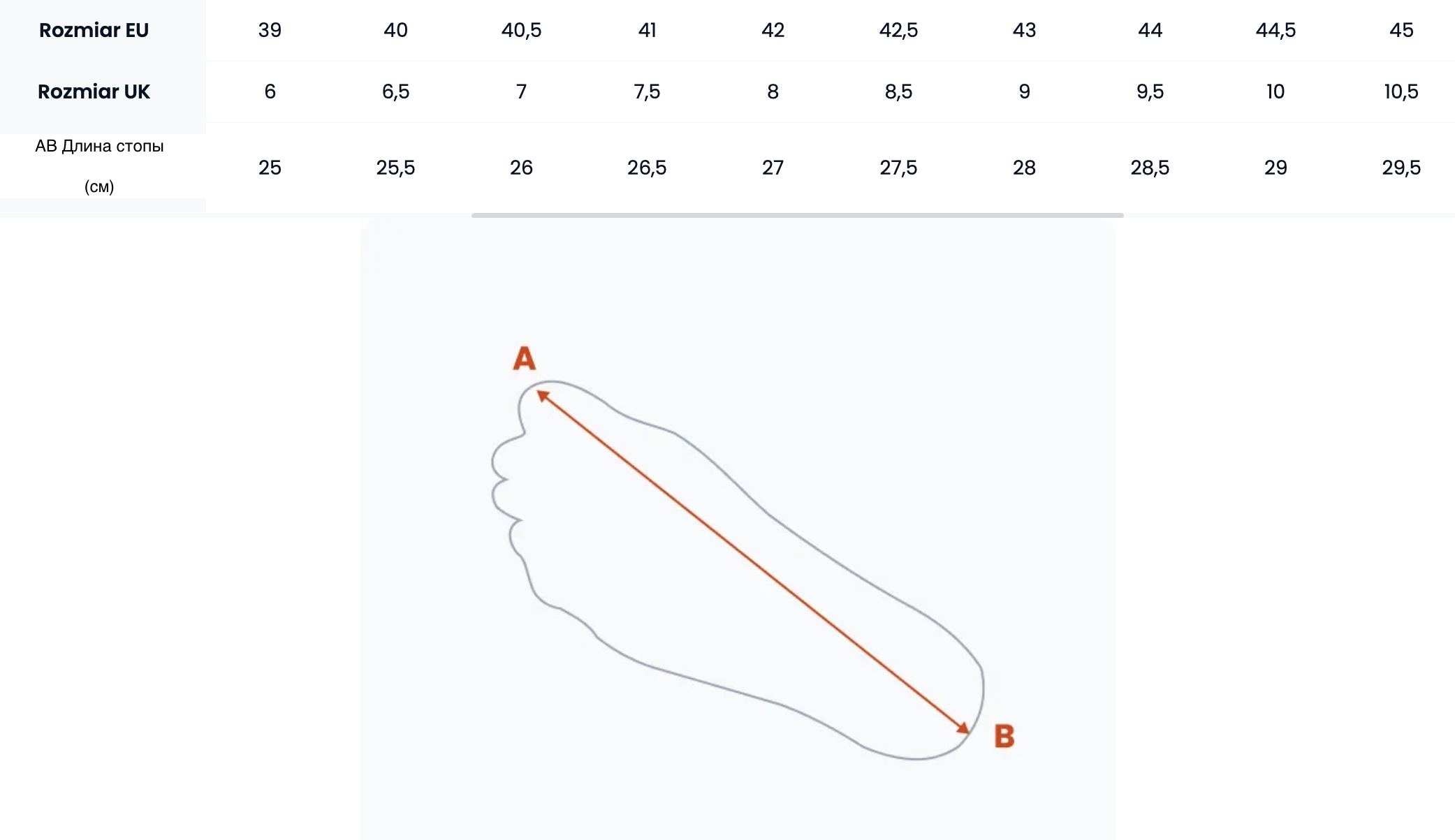 Таблица размеров