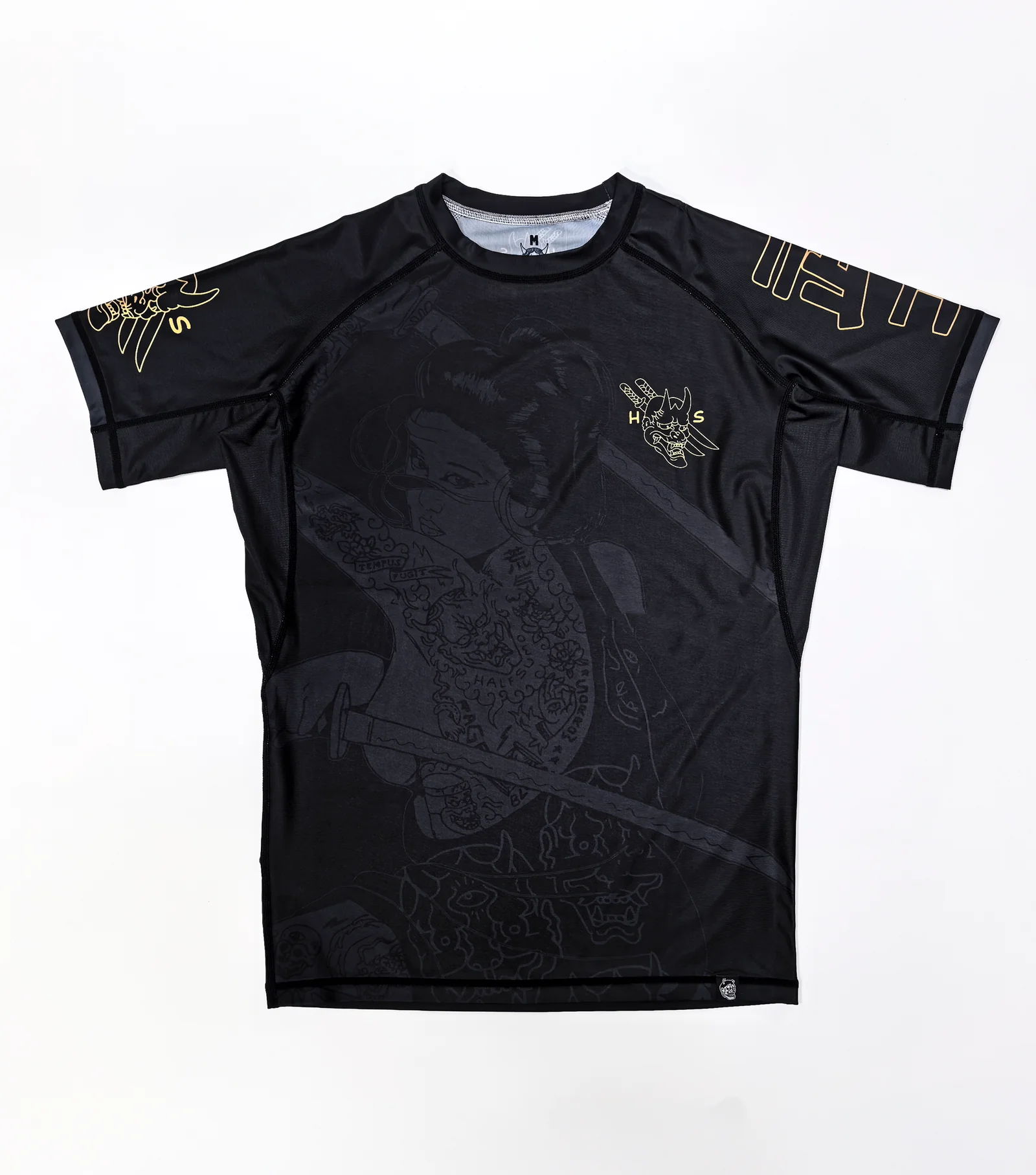 Каждый нарисованный вручную рисунок Half Sumo в стиле Irezumi был воспроизведен с высокой точностью на влагоотводяющей смеси поли-спандекса, с перфорированными боковыми панелями премиум-класса для повышения воздухопроницаемости и ощущения. Вся графика сублимируется, чтобы гарантировать, что все художественные детали будут правильно воспроизведены без какого-либо выцветания.