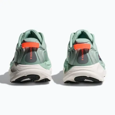 Ключевая особенность кроссовок Hoka - толстая, но легкая подошва с технологией обратного прогиба Meta‑rocker, напоминающей форму сноуборда или горных лыж. Это обеспечивает плавный перекат и эффективное гашение ударной нагрузки. Такой подход снижает утомляемость и риск травм голеностопа и коленных суставов, приближает положение стопы к естественному.