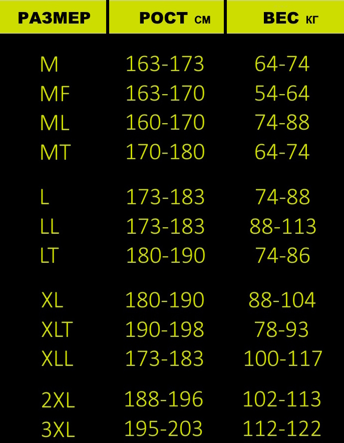 Таблица размеров