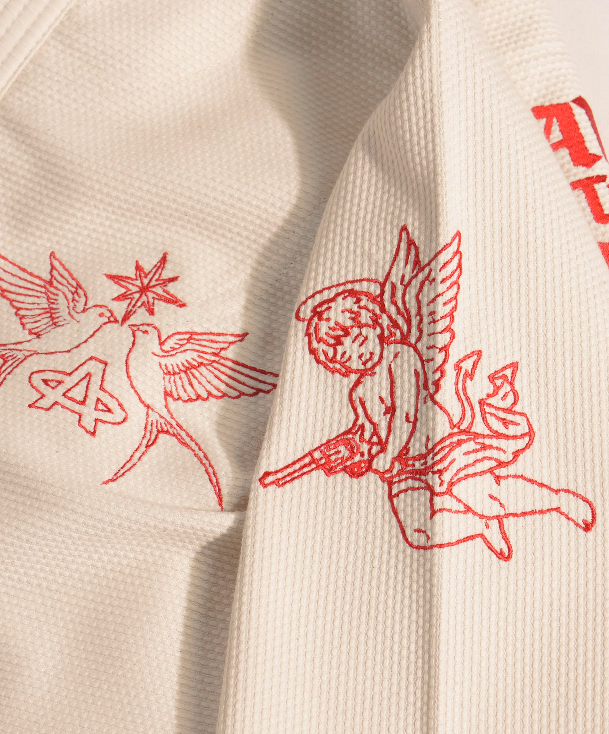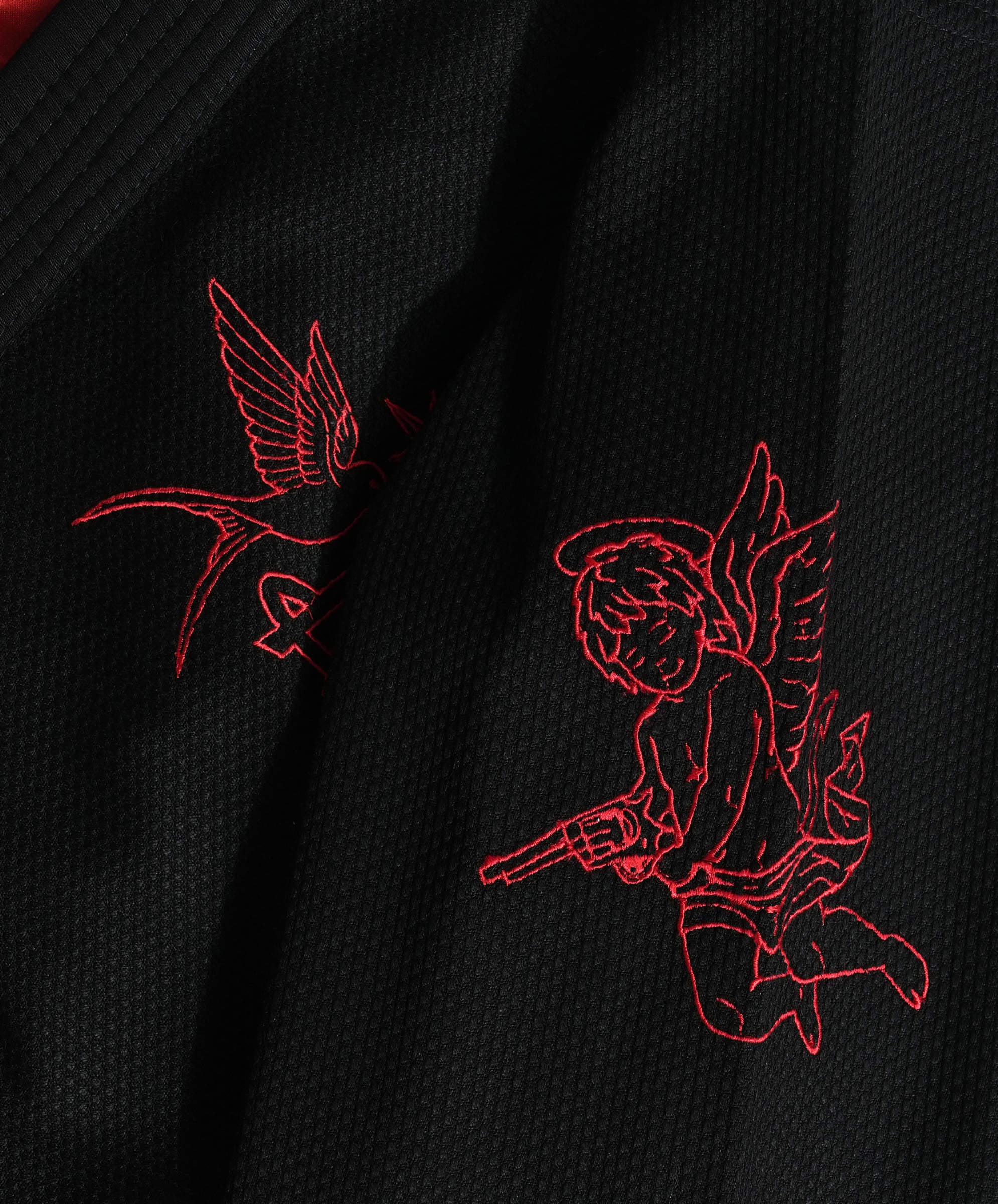 Вышитые вручную херувимы на обоих плечах. Не потому, что ты ангел. Потому что ирония идеальна, когда тебя гильотинят.