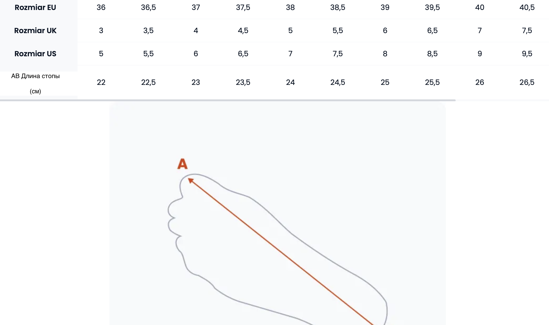 Таблица размеров