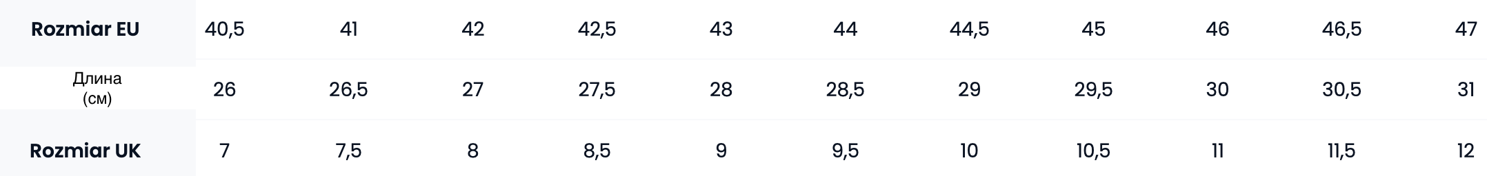 Таблица размеров