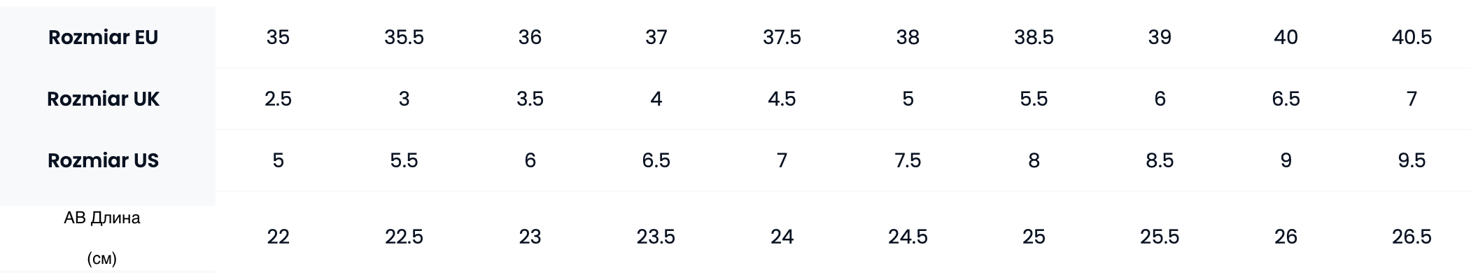 Таблица размеров
