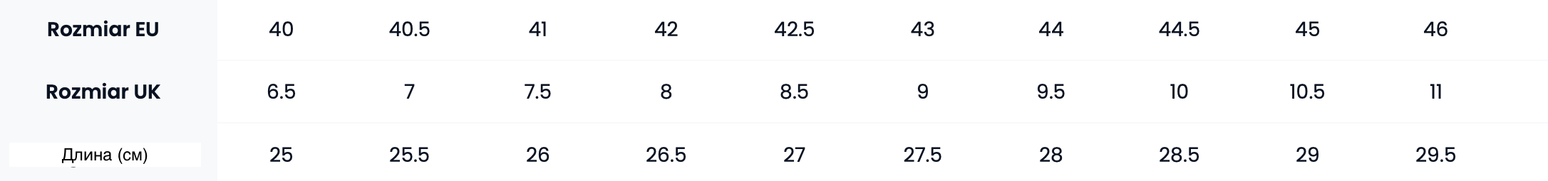 Таблица размеров
