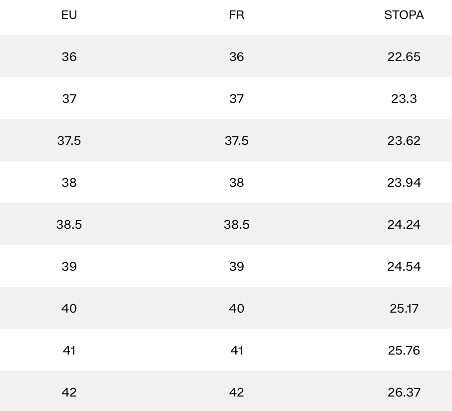 Таблица размеров