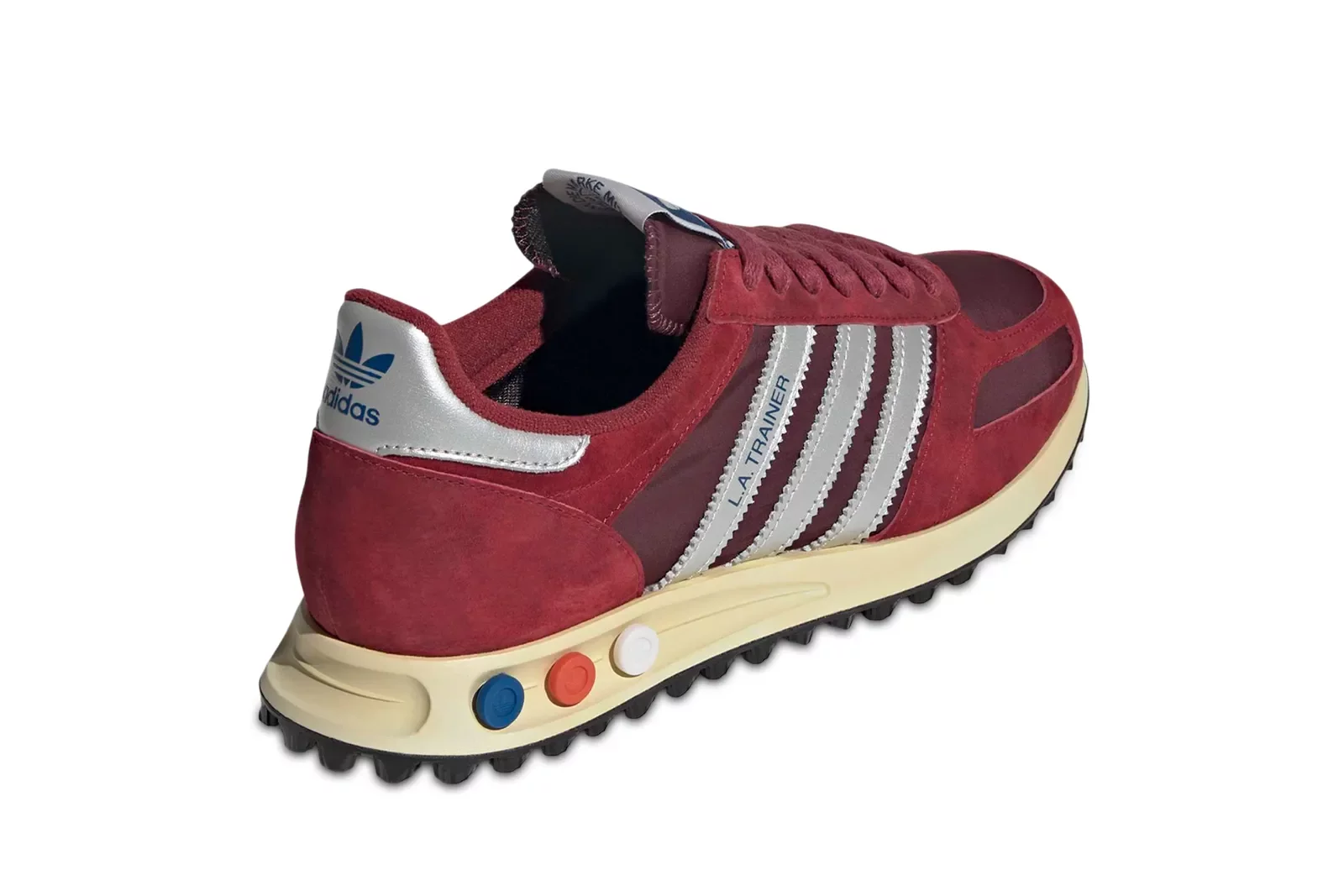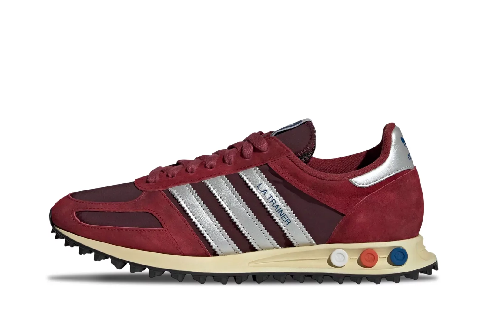 Adidas LA Trainer OG "Noble Maroon" - это возвращение легендарной модели, которая дебютировала в 1984 году на Олимпийских играх в Лос-Анджелесе. Эти ботинки сохраняют свой аутентичный винтажный стиль, сочетая в себе спортивное наследие с городской элегантностью. Верх выполнен из высококачественной кожи в глубоком бордовом оттенке "Noble Maroon", который прекрасно контрастирует с серебряными зубчатыми тремя ремешками и застежкой. Отличительной особенностью модели является промежуточная подошва, оснащенная системой регулируемых штифтов (Vario Shock Absorption System), которая в этой версии приобрела обновленный вид, сохранив при этом культовые цвета: синий, красный и белый. Кожаная стелька и резиновая подошва с выступами гарантируют исключительный комфорт и сцепление в повседневной жизни. Все это дополняет логотип Trefoil и классическая надпись "L.A. TRAINER" сбоку, подчеркивая статус этой модели как иконы дизайна adidas Originals.