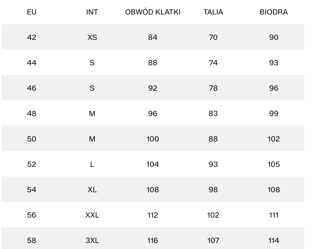 Таблица размеров