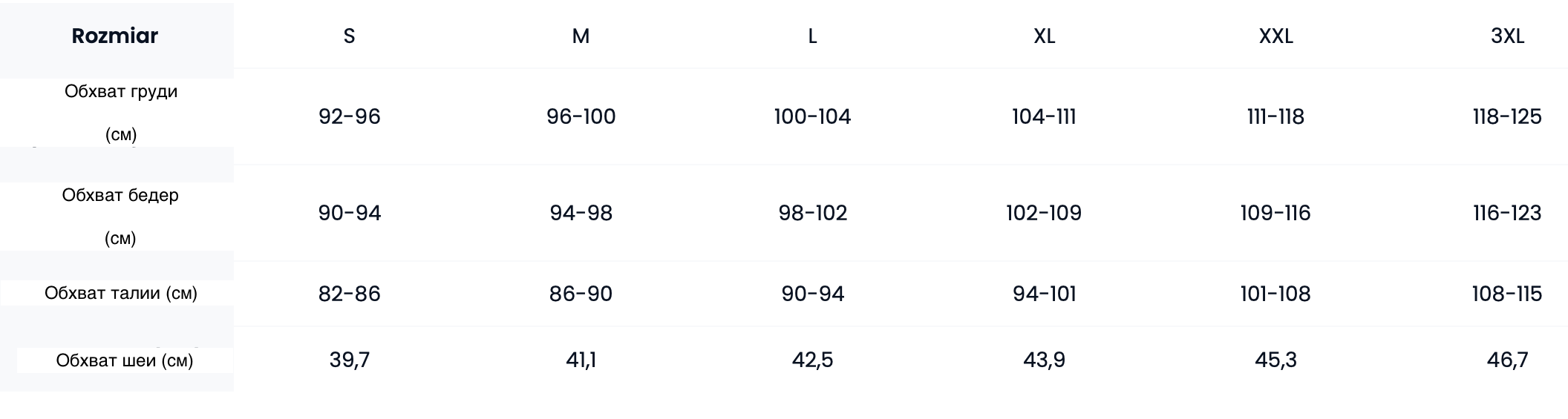 Таблица размеров