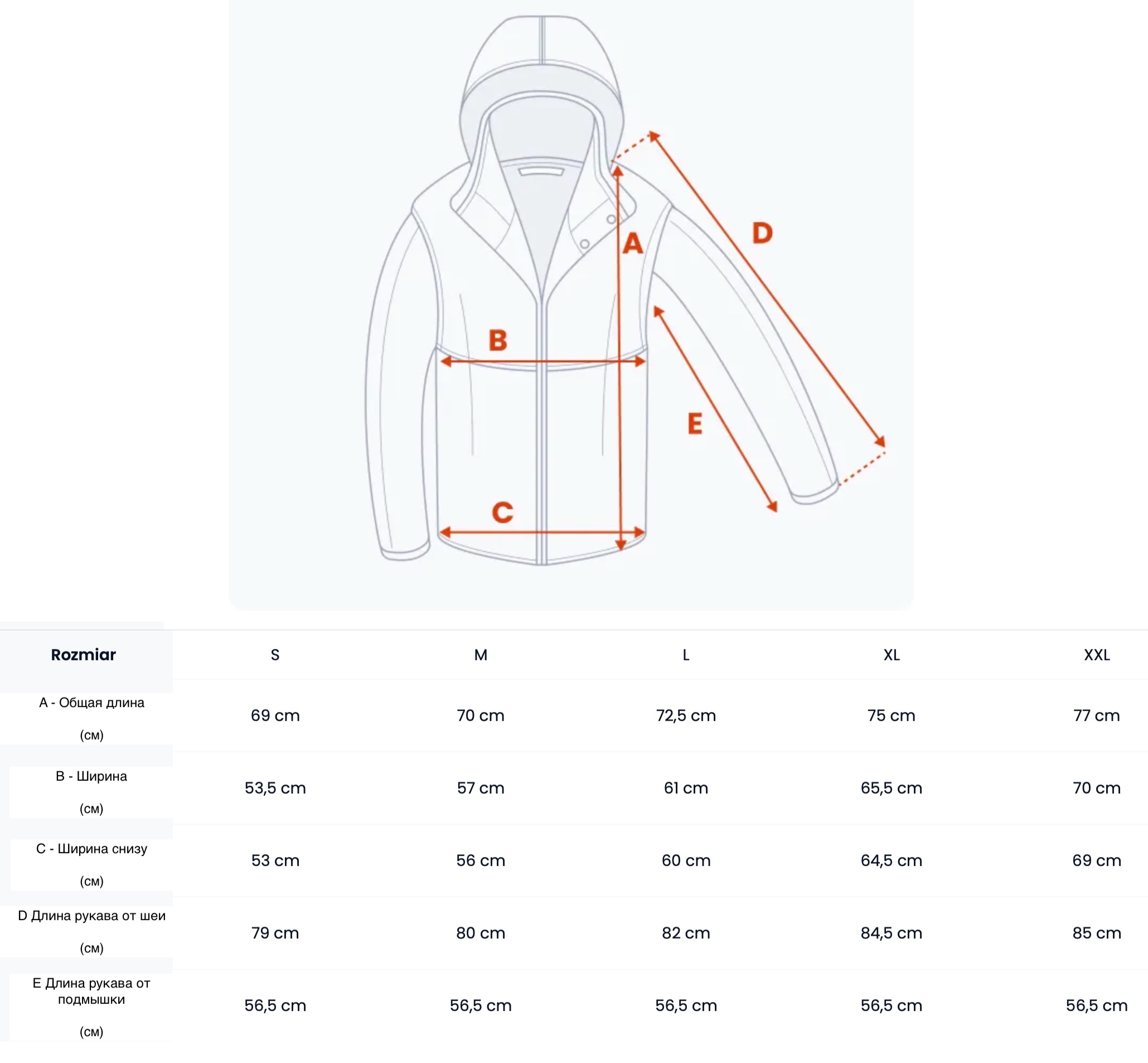 Таблица размеров