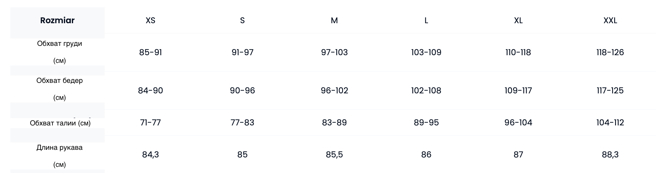Таблица размеров
