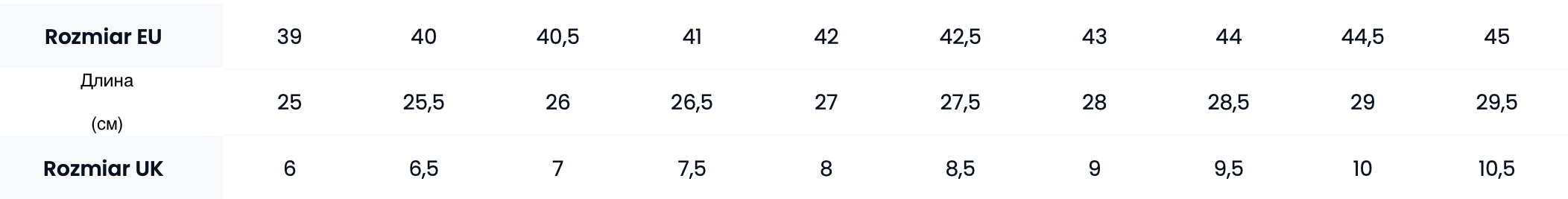 Таблица размеров
