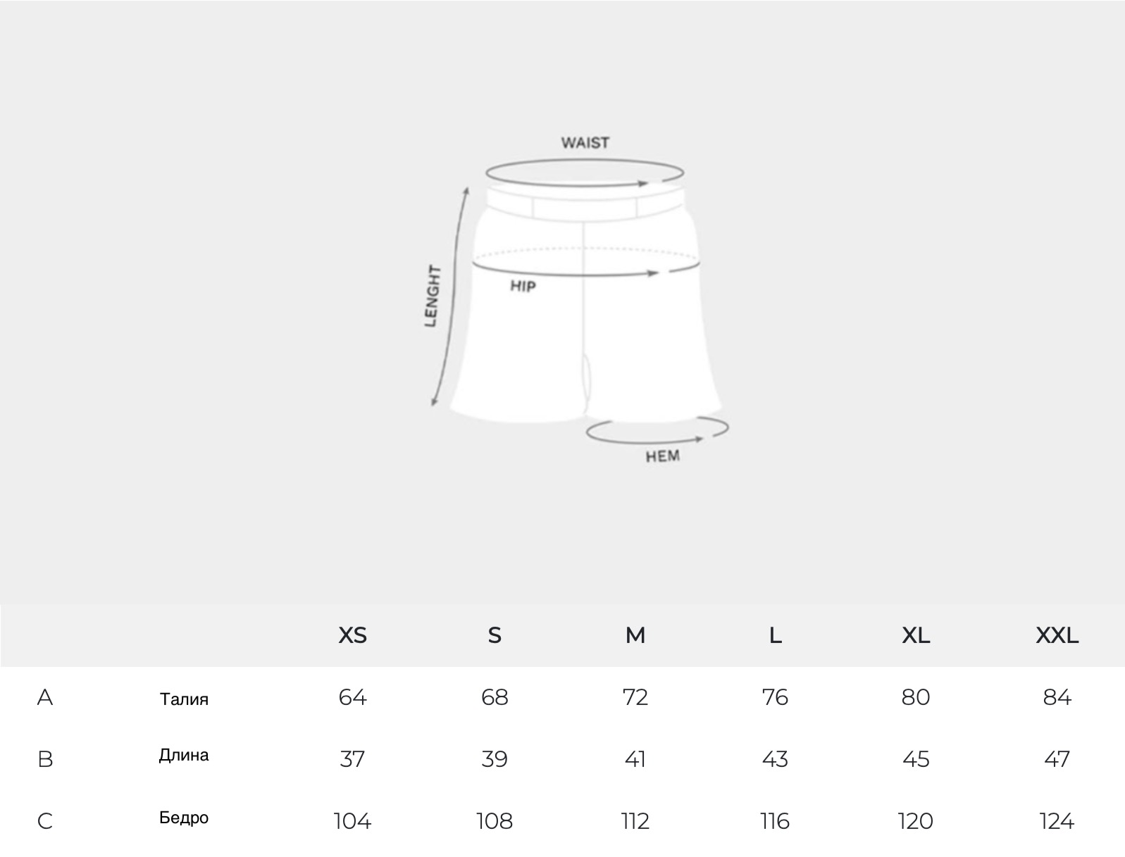 Таблица размеров