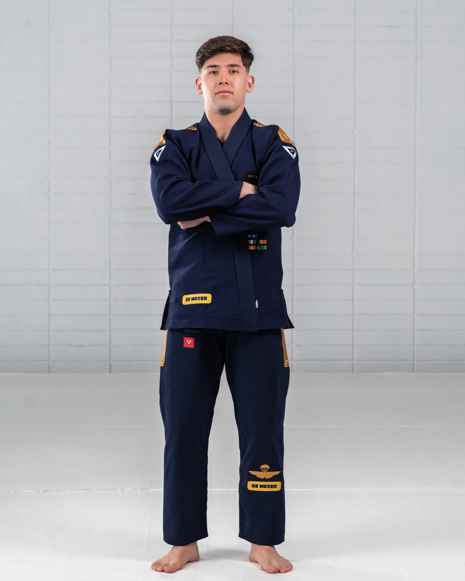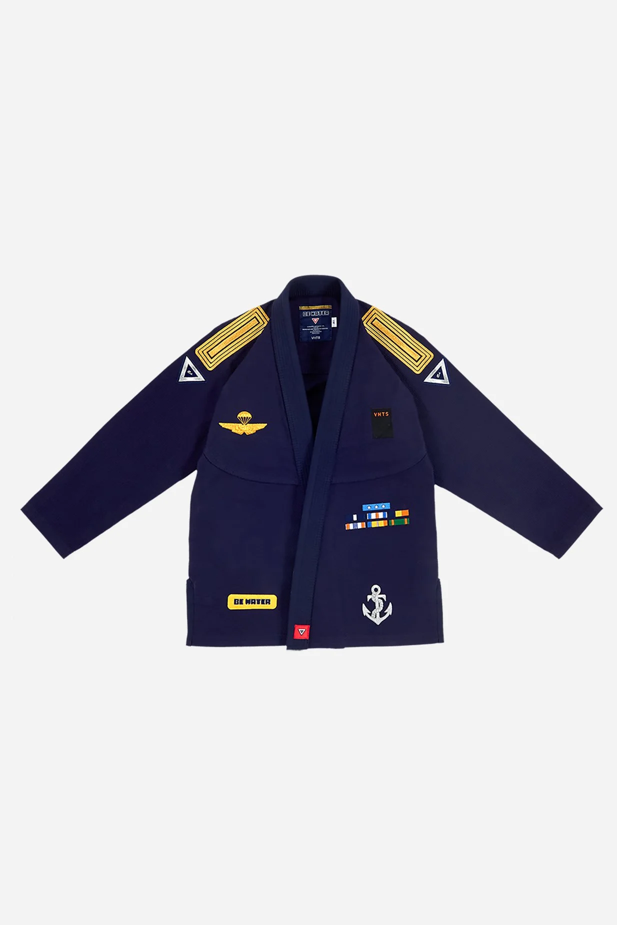 С момента запуска первого кимоно Be Water, выпущенного в 2014 году, это был наш самый популярный дизайн. За эти годы мы выпустили три версии, и теперь, в 2024 году, мы вернулись с новым захватывающим видом. Модель Be Water '24 черпает вдохновение из элегантности универсальной униформы военно-морского флота с потрясающими металлическими вышивками из золота и серебра.