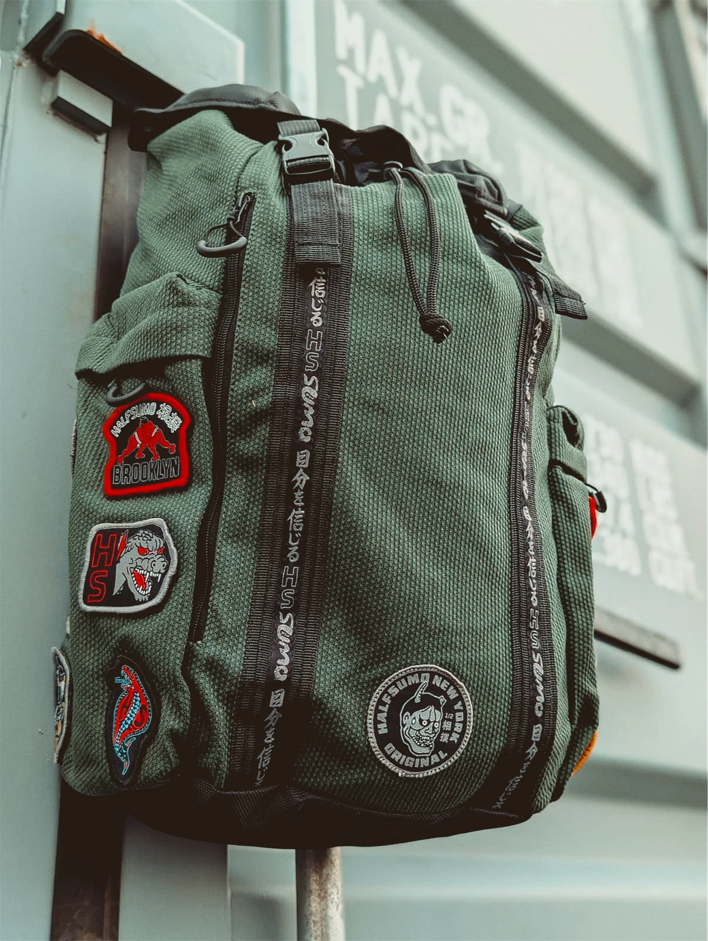 Водонепроницаемая нейлоновая подкладка позволяет хранить потное тренировочное снаряжение без утечки влаги, а также изготовленные на заказ произведения искусства в стиле ирезуми, вдохновленные традициями самураев и бушидо.