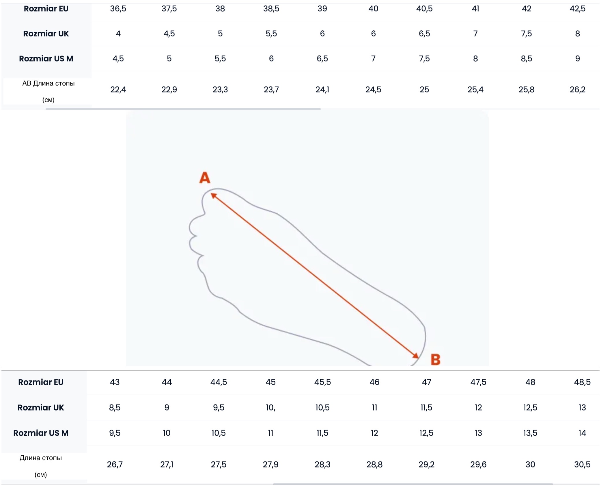 Таблица размеров