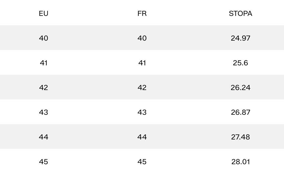 Таблица размеров