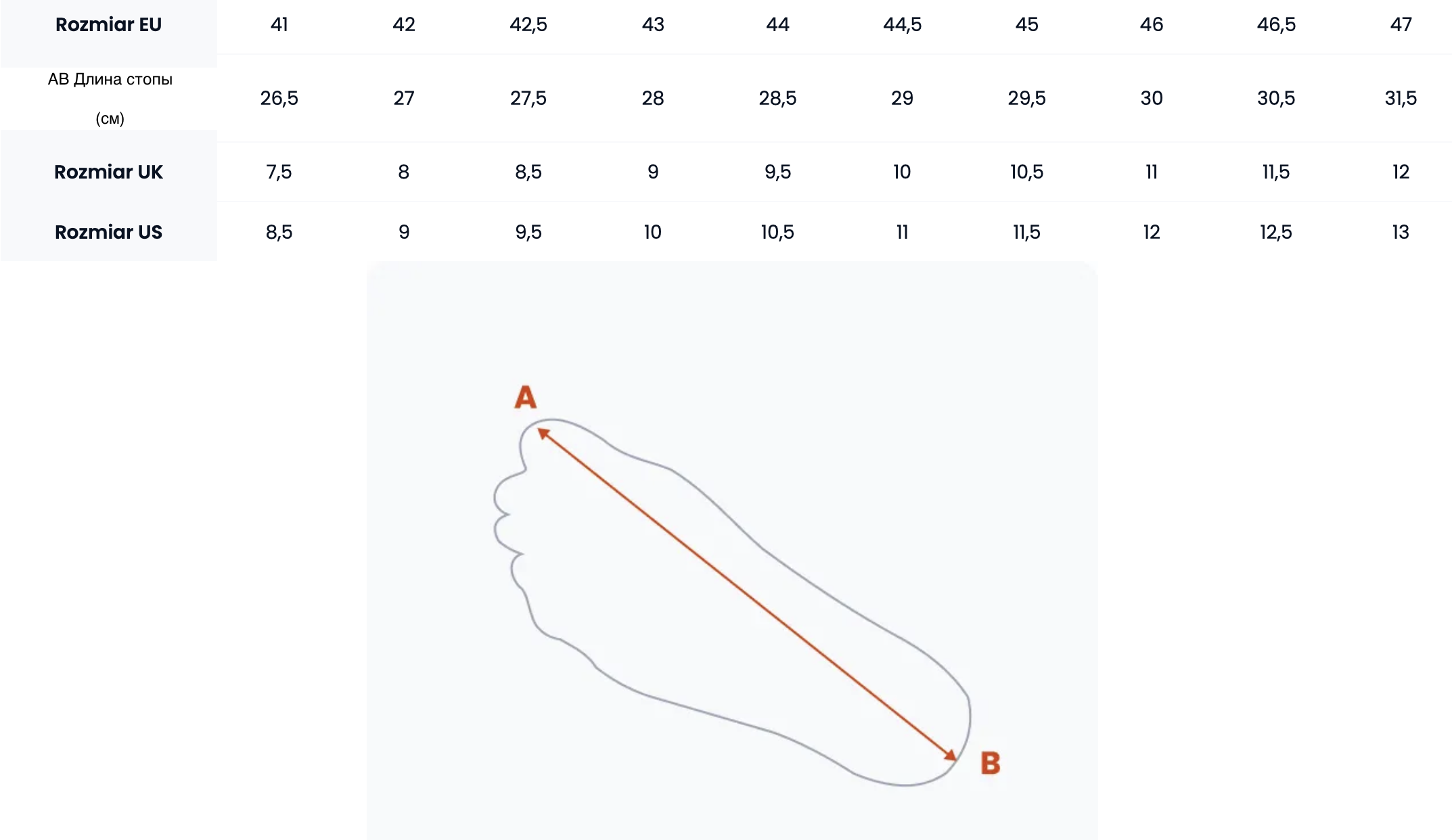 Таблица размеров