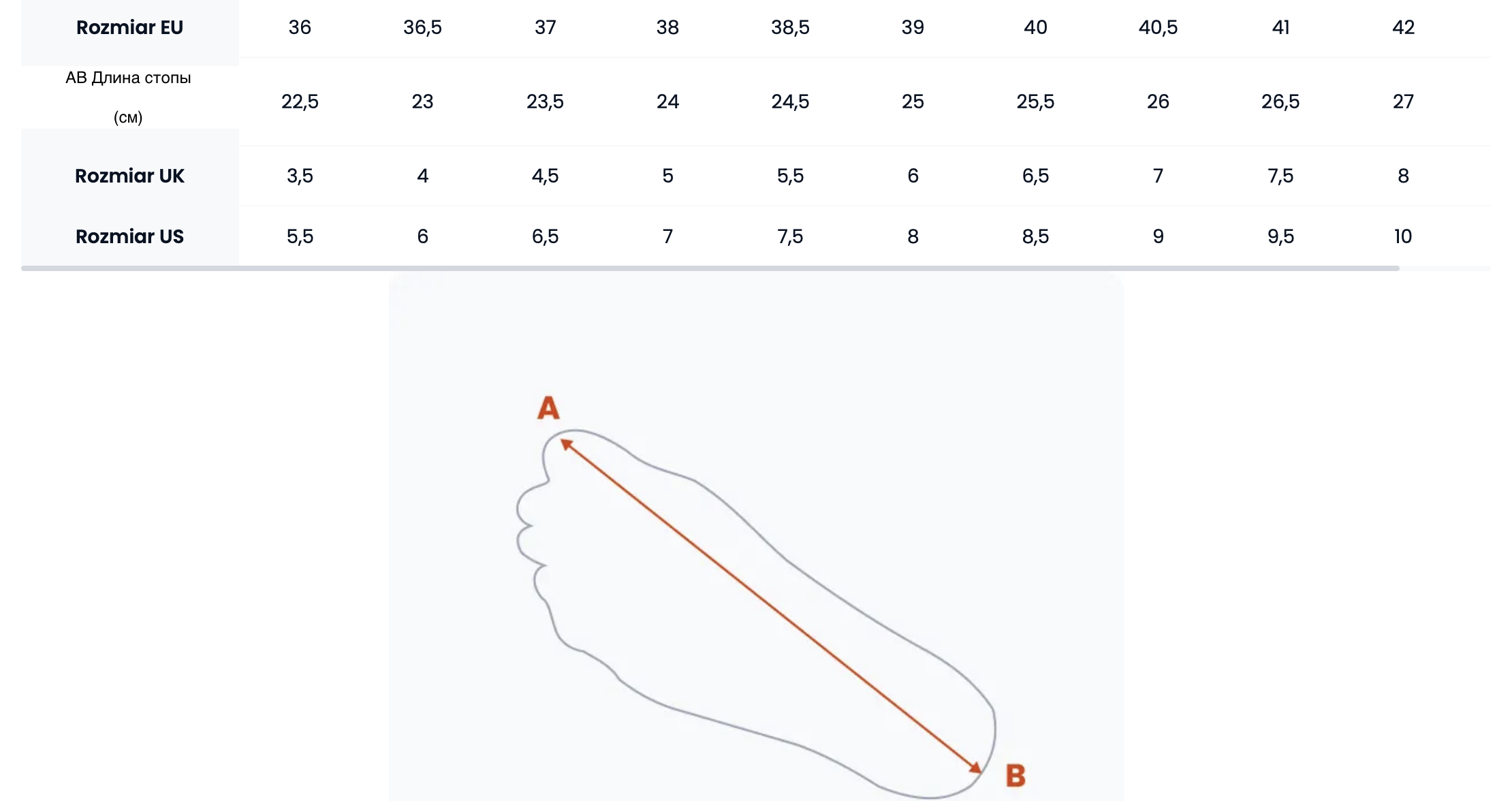 Таблица размеров