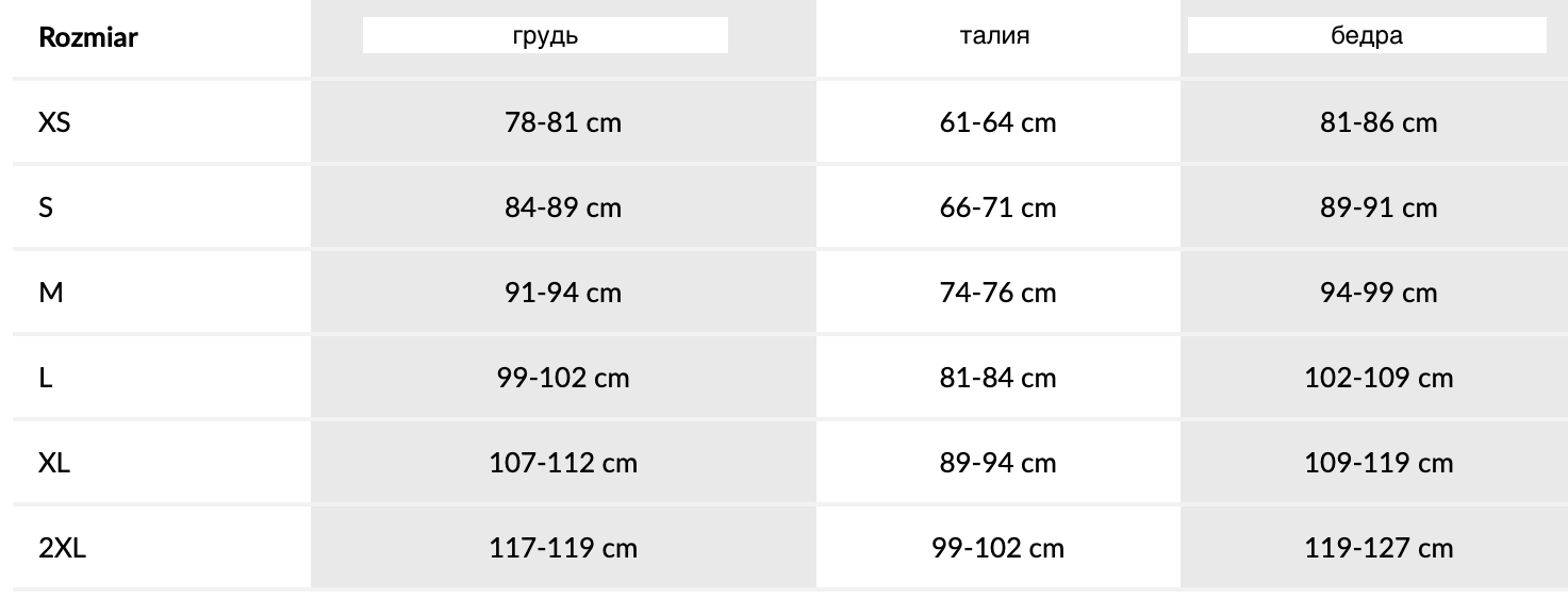 Таблица размеров