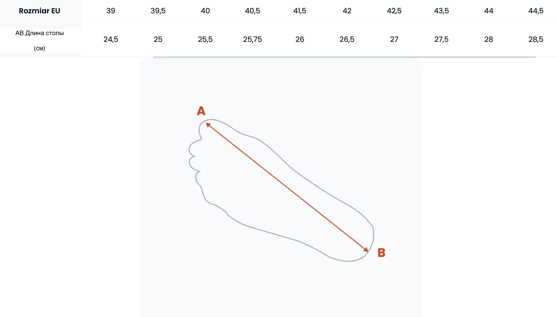 Таблица размеров